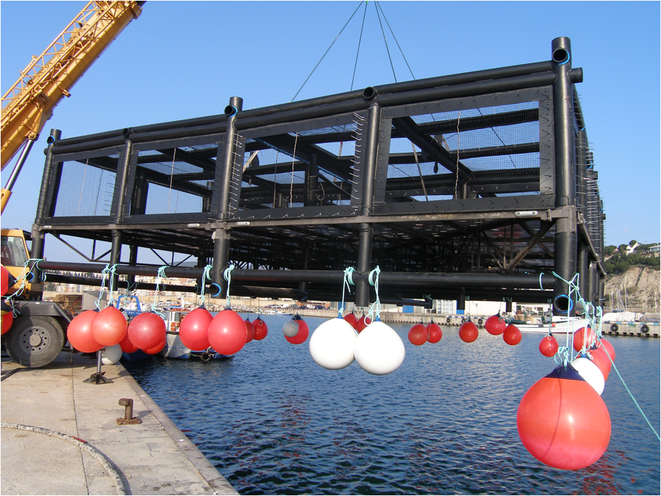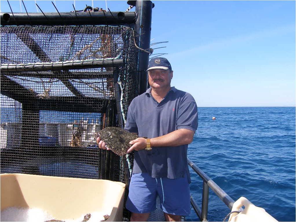 Proyecto pionero en el mundo, en engorde de peces planos en mar abierto, a 30 metros de profundidad, sobre la costa de Barcelona( España).